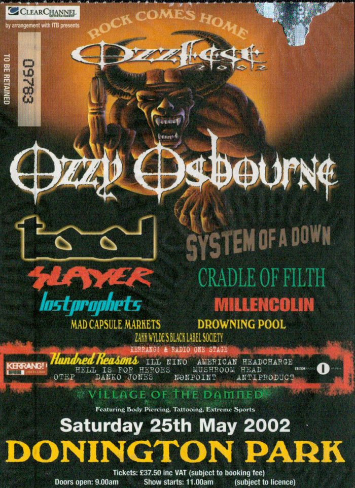 - In 2002 I also went to Ozzfest at Donnington Park and took my son – Black Label Society, Cradle of Filth, System of a Down, Ozzy